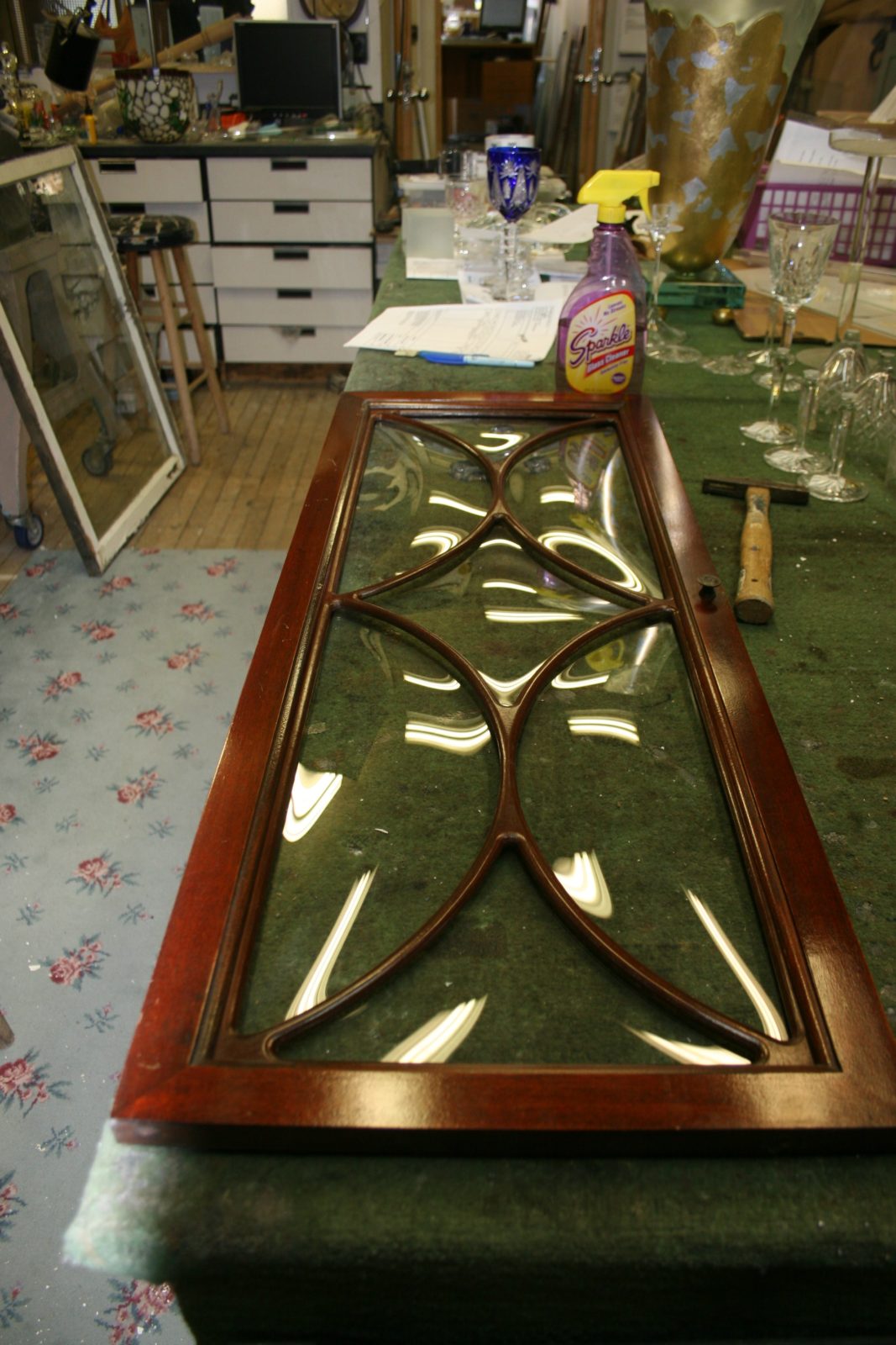 January 28th, 2013 by Marc Konys - posted in All Repair Projects, Antique Glass Repair, Bent GlassCustom made replacement glass for antique cabinet door. No matter the shape, the size or the type of glass, if it was made I can make it. I can make bubble glass, bent glass, curved glass, crown glass up to 4 feet by 8 feet. I also have old glass. Many times I bend old glass in order to maintain value.