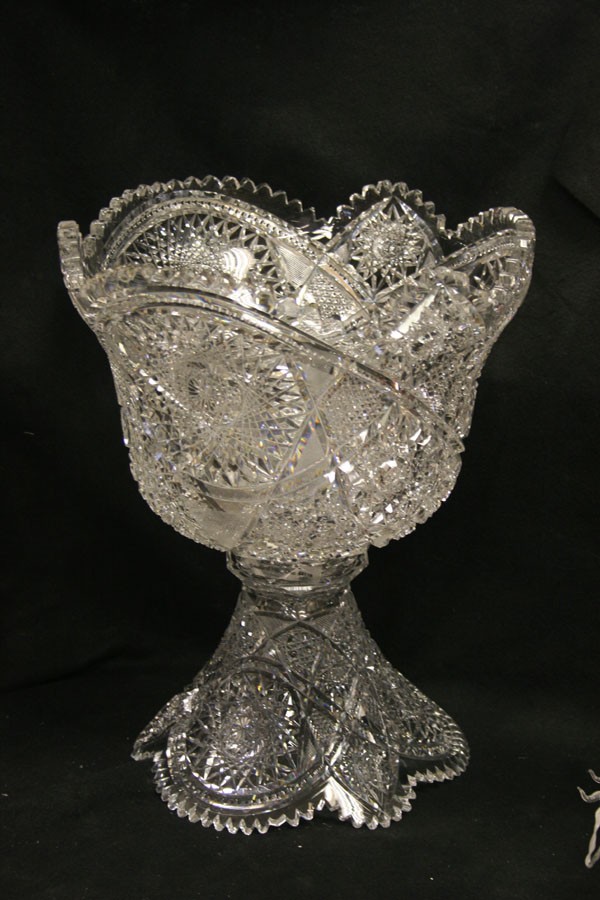 Saturday, January 9th, 2010 Posted in All Repair Projects, Antique Glass Repair, Chipped Glassware, Crystal Repair Pictures | 1 Comment »American brilliant cut glass punch bowl and pedistal with minor chips on the saw tooth was sent to me for repair. This bowl stands two feet tall and is a very valuable piece of crystal. It could be a piece cut crystal made by LIBBY but I look for a signature but wasn’t able to find one. I polished the chips on the teeth and it was a work out because this is a heavy crystal bowl. The crystal bowl and pedistal just set on one another.