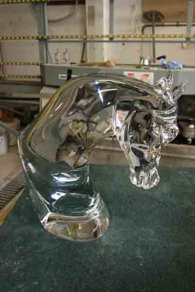 Monday, April 27th, 2009 Posted in All Repair Projects, Chipped Glass Repair, Crystal Repair Pictures, Glass Sculpture Repair, LaLique Crystal Repair | Comments Off on LaLique Crystal RepairCompleted repairs on LaLique Horse Head. I was also able to remove scratches from the bottom.