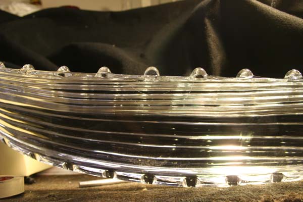 Tuesday, March 22nd, 2011 Posted in Antique Glass Repair, LaLique Crystal Repair | Comments Off on Antique Glass Repair LaLique Crystal Bird BowlThe bowl had a lot of scratches on the bottom and the bird had chips on its beak and tail . I reshaped the head and beak . Then matched the very fine etched finish. The bottom with all the scratches and ware marks was hard to polish with out removing the signature.