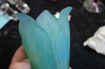 Daum glass has a satin finish and it makes repairing chips very difficult. This vase came in with a chip on the side of one of the leaves. I polished out the chip to a shine and then had it match the satin finish. The satin finish is coarser than the frosted on a LaLique Crystal .