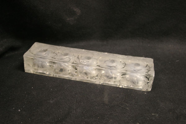 Saturday, January 9th, 2010 Posted in All Repair Projects, Antique Glass Repair, Chipped Glass Repair, Crystal Repair Pictures, Etched Glass, LaLique Crystal Repair | Comments Off on LaLique Crystal Perfume Bottle RepairThis is the first time I have worked on a LaLique Crystal Bottle like this. Over thirty years of repair I have worked on a lot of LaLique Crystal. There were chips around the stopper holes so I polished then out then etched then to match .