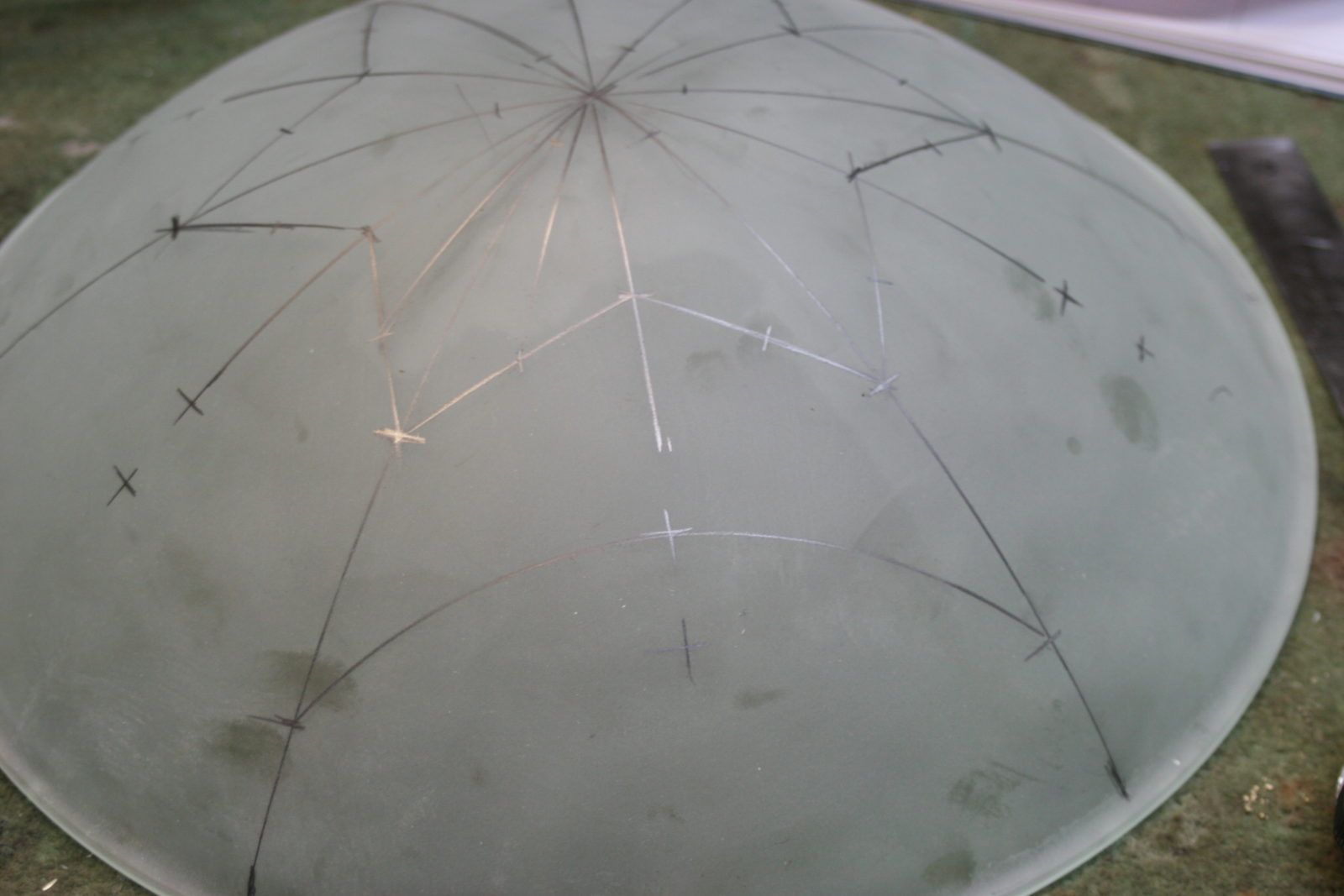 The replacement convex glass was frosted and the cut glass design was drawn on it.