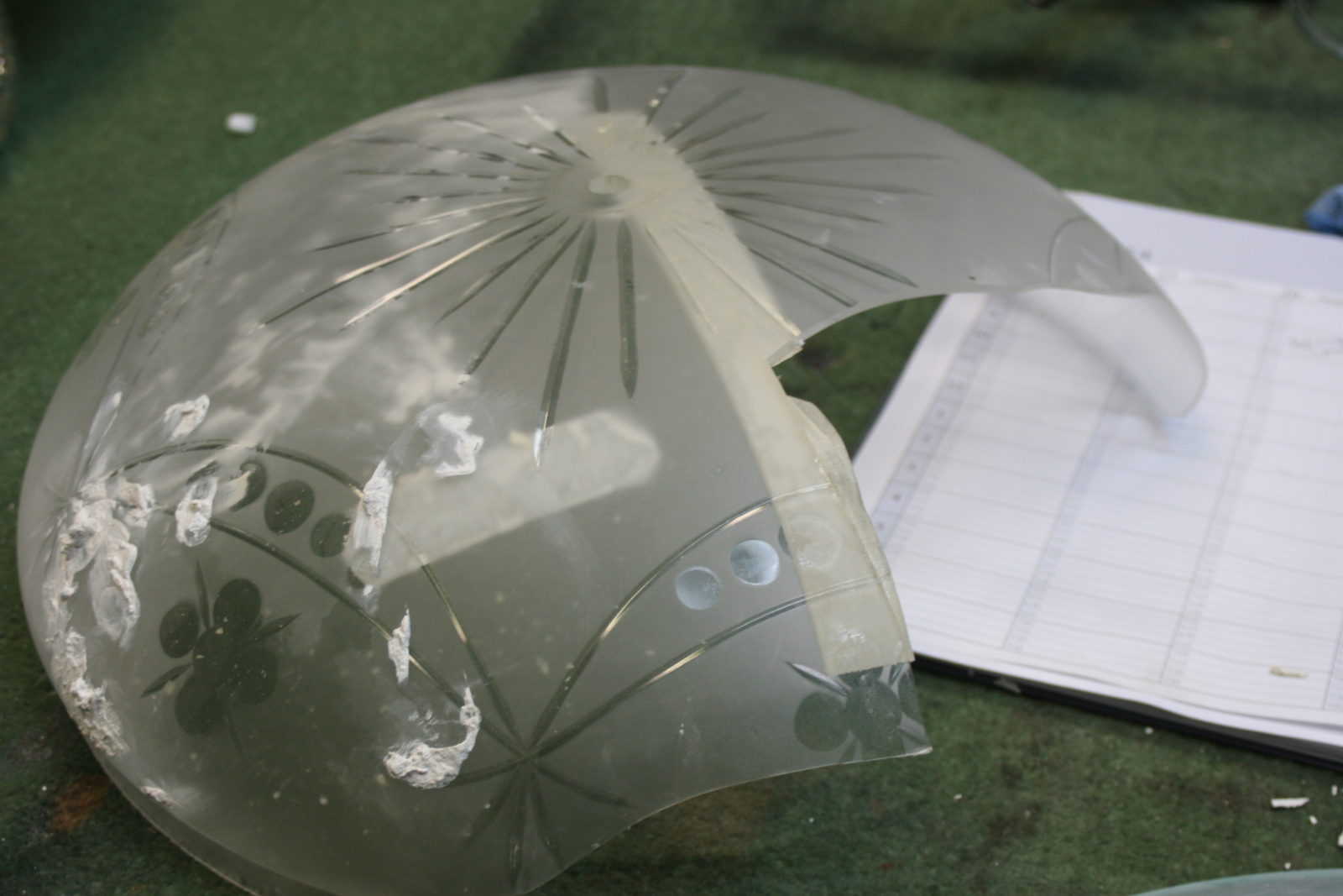 Antique glass globe repair with missing pieces