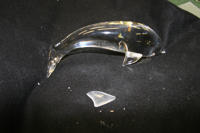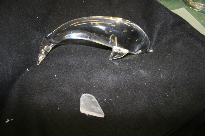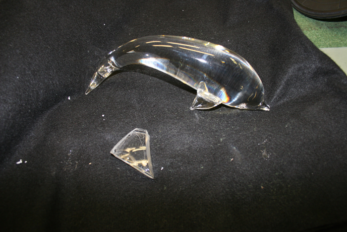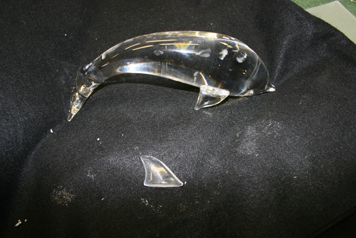 Saturday, November 8th, 2008 Posted in All Repair Projects, Crystal Repair Pictures, Glass Sculpture Repair, Glueings, Steuben Crystal, Steuben Crystal Repair, Zoo | Comments Off on Steuben Crystal Dolphin RepairStueben Dolphin Missing Dorsal Fin. We were able to fabricate a new fin from the remains of an old Steuben bowl. Please see below for the repair gallery.