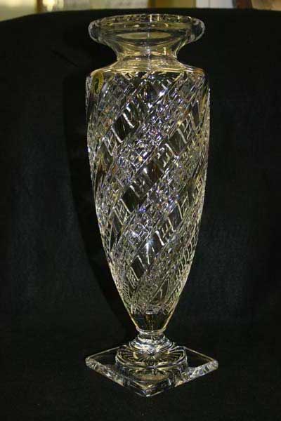 Saturday, May 16th, 2009 Posted in All Repair Projects, Testimonials, Waterford Crystal Repair | Comments Off on Waterford Crystal RepairBroken Waterford can be rpaired like this large cut glass vase with a cracked crystal stem. I ground smooth the broken parts and polished them. The foot had a large chip and it was deep into the glass. I would have to make the foot a little thinner . This ment grinding the entire bottom and polishing it.