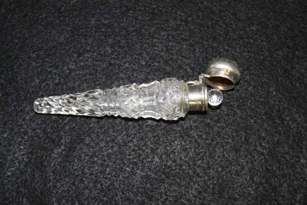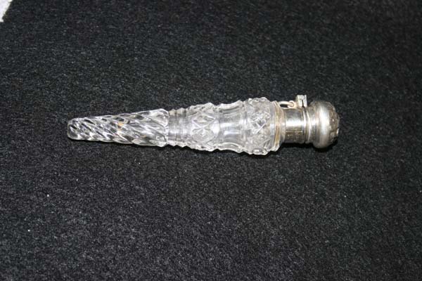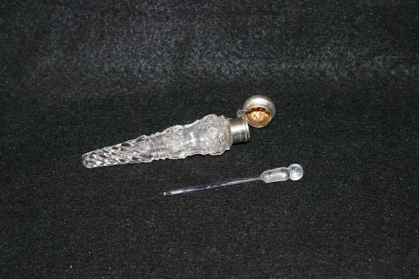 Friday, January 16th, 2009 Posted in All Repair Projects, Broken Decanter Repair, Crystal Repair Pictures | Comments Off on Crystal Repair Perfume Bottle New Stopper And DauberCan’t repair a stopper that is missing . So I designed two stoppers and my cleint pick the one she liked best. I ground a glass rod to fit the perfume bottle.Then found a cute little prism to act as the handle. Last was thing to do was make the new dauber and attach it to the stopper . This repaired crystal perfume bottle is ready for the stinky stuff. Antique glass repair is very rewarding.In all the years I have been restoring crystal perfume bottles and stoppers this is the smallest and nices one. The sterling silver top makes it.