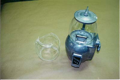 Wednesday, March 4th, 2009 Posted in All Repair Projects, Antique lamp repair, Blowen Glass Replacements, Bubble Convex Glass, Clock Glass, Glass Globe | Comments Off on Glass globe for gum ball machineNot sure if its a gum ball or peanut machine I made a new globe for it . The original was six sided but the customer didn’t want to mke it that way .