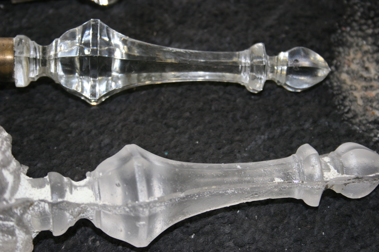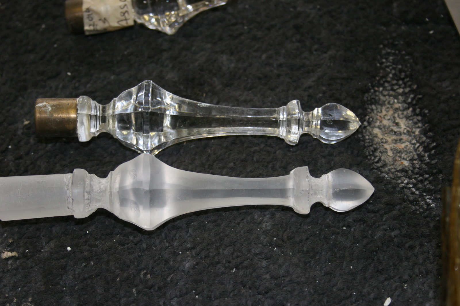 Replacement cut glass globe on the left and the original antique cut glass globe on the right.