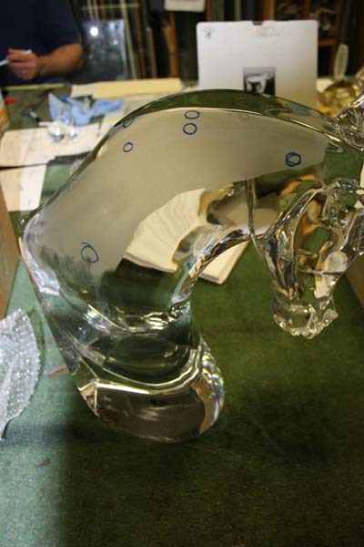 More than thirty chips had to be removed from this very expensive LaLique Crystal Sculpture.