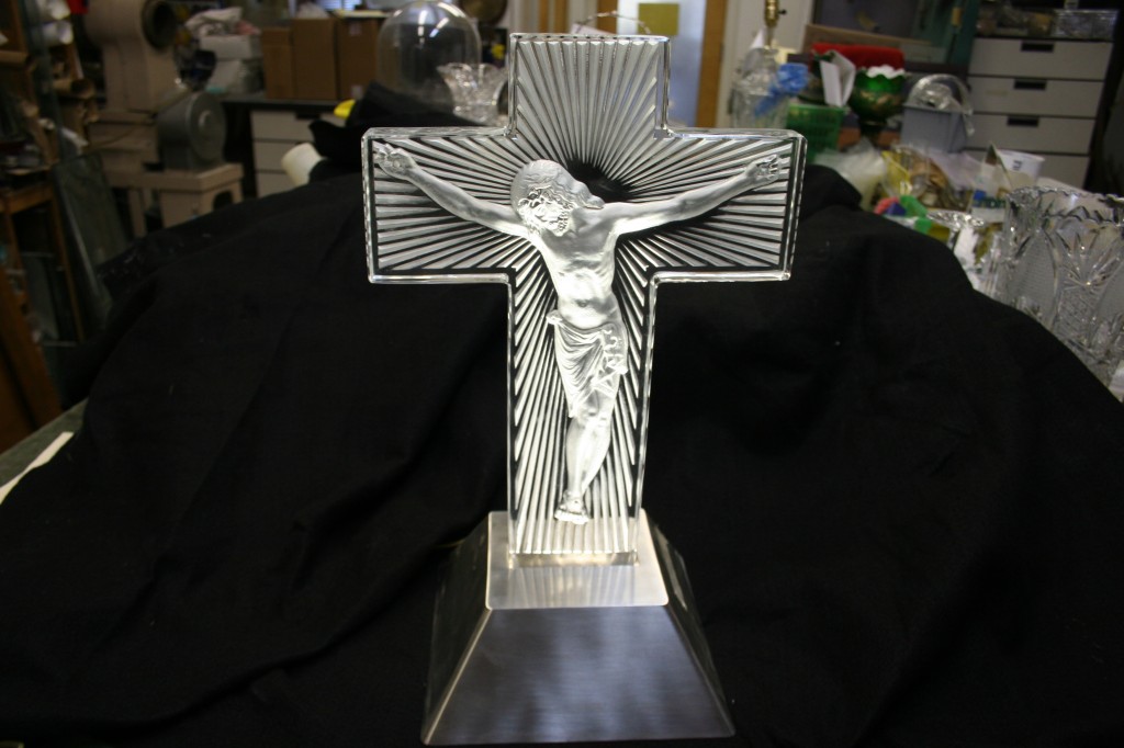 Thursday, November 3rd, 2011 Posted in All Repair Projects, Antique Glass Repair, Chipped Glass Repair | Comments Off on Chipped Crystal Repair LaLique Glass CrossThe lead glass crucifix had a large chip in the base. A cross like his is on the grave of Rene LaLique the founder of LaLique Crystal .