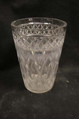 Saturday, May 1st, 2010 Posted in All Repair Projects, Baccarat Crystal Repair, Broken glassware, Crystal Repair Pictures, Glueings, Waterford Crystal Repair | Comments Off on crystal repair waterford vase broken bottomThis Waterford Crystal vase had a broken bottom. Sent to me with a piece missing and they lost the piece . My only option was to replace the bottom. I needed a piece of glass with a star cut in it and it had to be a good crystal. I found a crystal pitcher that would work so I removed the bottom .