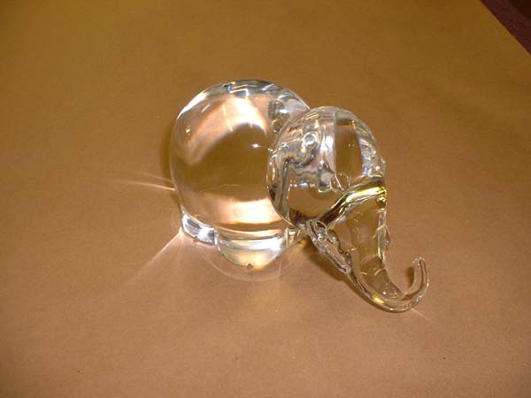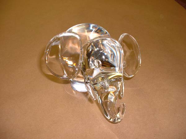 Sunday, February 1st, 2009 Posted in All Repair Projects, Chipped Glass Repair, Glueings, Steuben Crystal, Steuben Crystal Repair | Comments Off on Crystal Repair Steuben Elephant new earsBroken many years ago and put in a box and forgotten. Then the internet and solution to the earless elephant . I formed two ears out of a broken Steuben plate. This type of repair is fun know one would ever know the elephant had a ear job. Steuben glass figurine repair