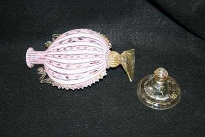 Friday, March 20th, 2009 Posted in All Repair Projects, Broken Decanter Repair, Broken Stem, Chipped Glass Repair, Crystal Repair Pictures | Comments Off on Antique Glass Repair Venetian Glass Bottle RepairA gorgeous Venetian glass bottle was brought to me for repair. The owner wisely researched many different repair shops before finding me. Not all repair shops have the experience to restore antique pieces like this one. I love doing this type of repair. The key to fixing this antique bottle was to find a new foot, and perform a transplant. The broken foot, or what was left of it, was cut off and polished flat. Using a UV cured adhesive, the new foot and the bottle were bonded together. The new foot was from a Venetian Vase from many years ago. My parts department (see picture) is the result of working with antique pieces for thirty years. I was pleased to find such a good match for this bottle, even the gold trim matched. Antique glass repair is enjoyable for me, and I truly love restoring antique glass artwork. In addition to crystal repair, I can blow glass, slump or bend glass, stain, paint, bevel, curve, engrave, etch, and cut glass.